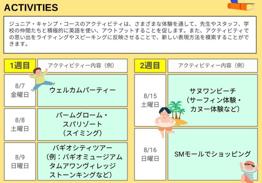 2026年A&J 夏のキッズ・ジュニアキャンプ詳細(フィリピン・バギオ留学)