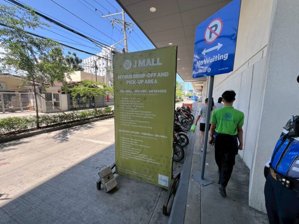 またSMが運営するバス(MyBus)を利用することもできます。正面向かって左手側の位置にあります。Mybusはセブ島内の主要箇所を繋いでいるバス会社でリーズナブルさが魅力です。