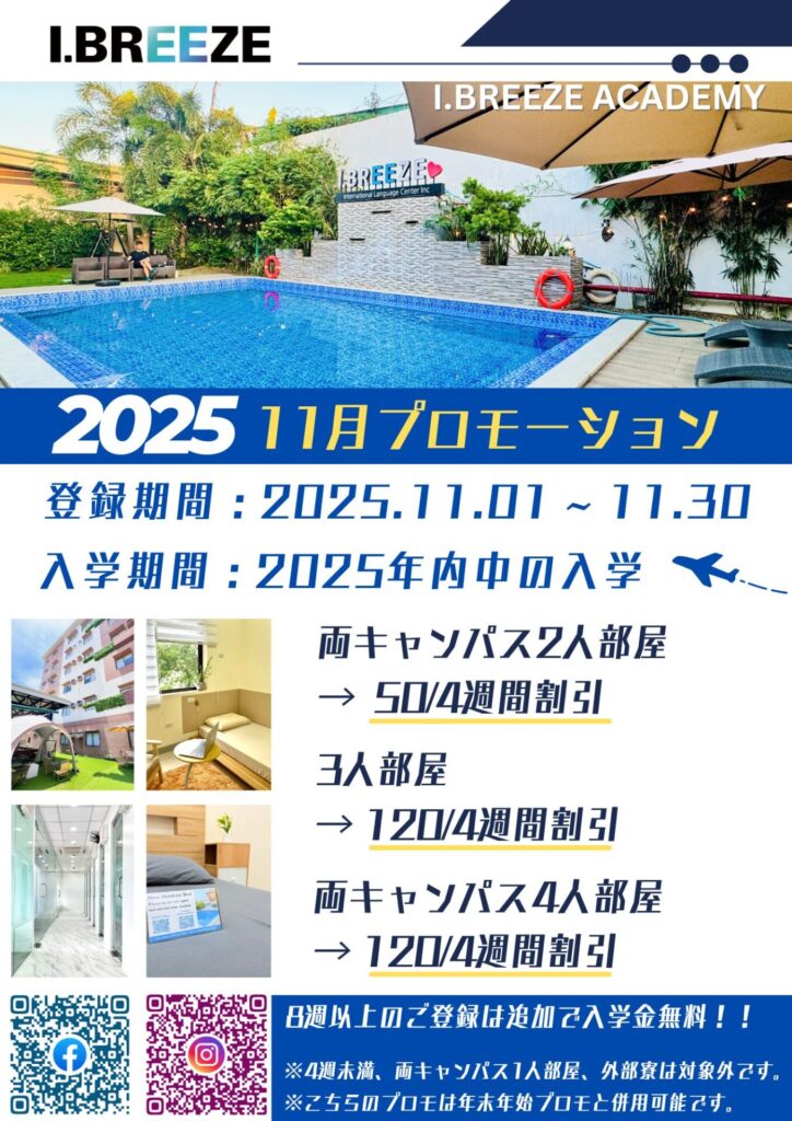 セブ島のI.BREEZEアイブリーズより2025年11月末までに申込みをされた方を対象とするキャペーンが発表されました。