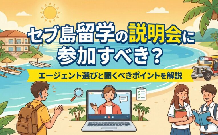 セブ島留学の説明会は、語学学校の特徴や費用相場、現地の生活環境、治安情報までを一度に確認できる、留学準備に欠かせない情報収集の場です。 パンフレットやWebだけでは分かりに...